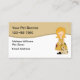 Cute pet themed business cards in a simple layout with graphic of a Pet Care professional and cute dog. An editable design you can personalise your way for a pet sitter, pet groomer, or dog walker.