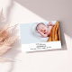 Simple birth announcement card with welcome text that includes the newborn's name and birth information. You can include a second picture of the baby or the baby's parents on the back, along with a brief message.