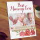Cute modern trendy pretty floral frame of roses in red, pink and green colours and photo collage for a Happy Mother's Day for the first time with your baby. Just perfect for a beloved mother. Personalise photos and names of your baby and the current year.