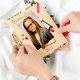 This cute, graduation design has a smart look for today. Faux gold foil "Graduation" text at top, pink colouring pencil, crafty faux paper heart, tulips, and photo borders in the background. Invitation on the back is customisable. Your middle school grad will look great.