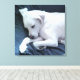 Cute Photo of Beautiful White Dog Resting on Couch Canvas Print