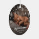 Did you have a baby this year? Add a memory to your tree with this cute keepsake ornament featuring a modern and simple design with snowflakes and the message, "My First Christmas" in chalk script along with your baby's name and the year, over your favourite newborn photo. Add the same photo to both sides or a different one on each side. A gender neutral design that is great for a boy or a girl. This ornament also makes a great gift for close friends and family.