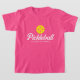 Cute pickleball sports kid's t shirt for girl. Custom tennis clothing with yellow ball logo and script text. Cool sports Birthday party gift idea for fan, player, coach, daughter, granddaughter, play friend etc. Change ball logo into any colour. Also great for other activities. Personalise with your own funny quote or team name. Available in pink and other colours. Also for available for adults.