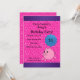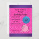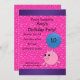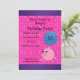 5" x 7" invitation with cute pig pink stars background, with purple stripe and a faux glitter blue scallop circle to change the birthday year for 1st, 2nd, 3, 4, 5, 6, 7, 8, 9, 10, 11, 12, 13 14, 15, 16, 17, 18, 19 20, 30, 40, 50, 60, 70, 80 ,90