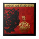 In a square are 2 pigs: one (black paper-cut Chinese style) seems to come sniff a golden paper-cut shape (inside is the second pig with the Chinese symbol). Behind them there is a red background formed by large decorative and ornamented letters with the words: "Pig Year" and at the top "Year of the Pig". Design on square ceramic tile with black background. You can easily change year (font, colour, size and position) by clicking the customise button. Matching office products, home products, greeting card, postcard, craft products and more. Perfect for Chinese New Year of the Pig or birthday (people born in the Pig Year). ----- "The Pig (豬) is the twelfth and the last sign of the Earthly Branches (亥). In the continuous Sexagenary cycle, every twelfth year corresponds to Hai, and is commonly called "the Year of the Pig" (豬年). There are five types of Pigs, named after the Chinese elements. In order, they are: Metal, Water, Wood, Fire, and Earth.