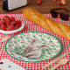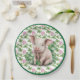These St Patrick's Day paper plates feature a cute watercolored pig surrounded by a border of purple clover.