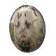 This awesome dartboard features a beautiful photograph of a cute pink spotty pig emerging from some tall grass.