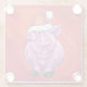 Cute Pig in Santa Hat on Red Glass Coaster