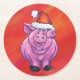Cute Pig in Santa Hat on Red Round Paper Coaster