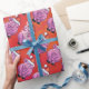 Cute Pig in Santa Hat on Red Wrapping Paper