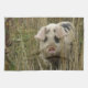 This awesome kitchen towel features a beautiful photograph of a cute pink spotty pig emerging from some tall grass.