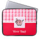 This laptop sleeve looks exactly as it does in picture. I actually thought is was too small until I put my laptop in it. It's a bit snug, but it fits. Figure it will stretch a bit, hopefully seams hold. Them seem good for now. I didn't have any personalization done, looks great as is.