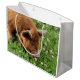 So very happy with the quality of this bag! The thickness of the paper along with the glossy finish I just love it! Can’t wait to give our pup his gifts in this awesome custom gift bag! The printing came out amazing! The black crisp clear printing on the white bag looks amazing! Very pleased with this purchase!