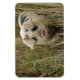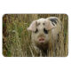 This awesome magnet features a beautiful photograph of a cute pink spotty pig emerging from some tall grass.