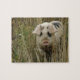 This awesome puzzle features a beautiful photograph of a cute pink spotty pig emerging from some tall grass.