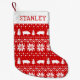 Nordic Style Red and White Patterned Christmas Stocking for Pig Lovers. An adorable holiday stocking with knitted style pattern. Personalise this cute xmas stocking with your name so Santa will be sure to know it's yours. Perfect to fill with goodies for someone you love.