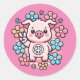 Cute Pig with Peace Sign & 70's Themed Flowers Classic Round Sticker