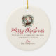 Cute piglet in a rustic Christmas wreath with pinecones. Personalised (year on the front and text on the back) Christmas ornament for farm animal, pig lovers.