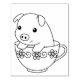 Cute Piglet Pig in a Teacup Colouring Page Rubber Stamp