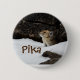 The button has a beautiful, close-up view of a little Pika in the snow. The word "Pika" is written in a fun, brown font.