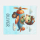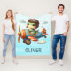 Personalised adorable Flying Dino Pilot fleece blanket! A charming little dinosaur at the controls of a whimsical blue and red aeroplane, soaring into adventures. Perfect for dinosaur-loving kids, this cute design sparks creativity and interactive play. Get ready for high-flying fun with this Flying Dino Pilot!