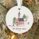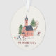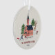 Cute pink Alpine ski lodge winter fun Christmas Ornament