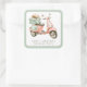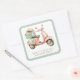 Cute Pink and Aqua Coastal Scooter Square Sticker