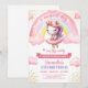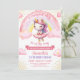 Cute pink and gold unicorn ballerina girl birthday invitation