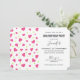 A birthday invitation with a cute pattern composed of pink and green hearts on a white background.