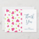 A flat thank you card with a cute pattern composed of pink and green hearts on a white background. Personalise with your own message on the back.
