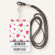 Cute Pink and Green Tumbling Hearts Pattern ID Badge
