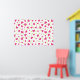 A poster / backdrop with a cute pattern composed of pink and green tumbling hearts on a white background.