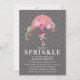 Cute Pink and Grey Floral Umbrella Baby Shower Invitation