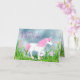 Cute Pink and White Unicorn with Flowers Birthday Card