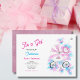 Cute Pink & Aqua Watercolor Baby Girl In Stroller Invitation