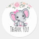 Cute Pink Baby Elephant and Roses Border Thank You Classic Round Sticker