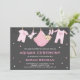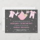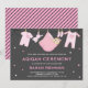 Amaze your guests with this cute Aqiqah invite featuring an adorable little baby girl with cute clothes against a grey background. Simply add your event details on this easy-to-use template to make it a one-of-a-kind invitation. Flip the card over to reveal an elegant pink and grey stripes pattern on the back of the card.