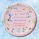 Cute Pink Baby Girl Dinosaur 1st Birthday Paper Plate