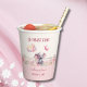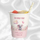 Customise this Cute Elephant and Balloon Paper Cup with your Baby Girl's Name, and add a Whimsical Touch to her 1st Birthday Party. The Dusty Pink Flowers in the background are perfect for a Pretty, Little Girl's Birthday Celebrations.