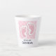 Latte mug with an adorable image of pink baby girl footprints with a heavy white outline.