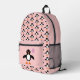 This awesome backpack features a cute cartoon of a penguin with pink eyes, a little orange beak and a white tummy. The penguin is holding a pretty pastel pink balloon. There is pale pink text inside the balloon that says, “Baby girl”. This is the perfect gift for celebrating a baby girl.