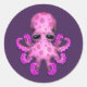 Cute Pink Baby Octopus on Purple Classic Round Sticker