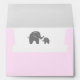 Cute pink baby shower envelopes with grey elephants. Zoo animal design for new baby girl or boy.