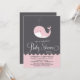 Cute and whimsical baby shower invitations that features and pink baby whale - calf and whimsical calligraphy script.