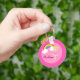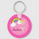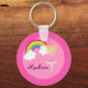 This cute custom ballerina girl gift features a blonde ballet dancers en pointe underneath a pretty rainbow on a light pink circle background bordered by hot pink. A beautiful personalised present for a child who loves ballet dancing.