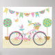 Cute Pink Bicycle with birds, bunting and topiary trees
