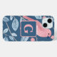 Cute pink bird blue grey personalised monogram Case-Mate iPhone case