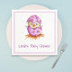Cute girl baby shower napkins with a little bird hatching in pink and orange colours. Perfect to complement your baby shower celebration. The text is customisable and you can even customise it further if you desire. You can find coordinated products in my store. Illustrated and designed by Patricia Alvarez.