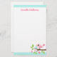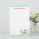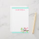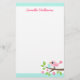 Cute stationery featuring a little pink bird with an egg sitting on a branch with green leaves and pink flowers. At the top and bottom are aqua blue borders. Customisable text, add a name or other text. Sweet and fun design.