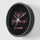 Cute Pink & Black Hello Gorgeous Quote Slogan Clock